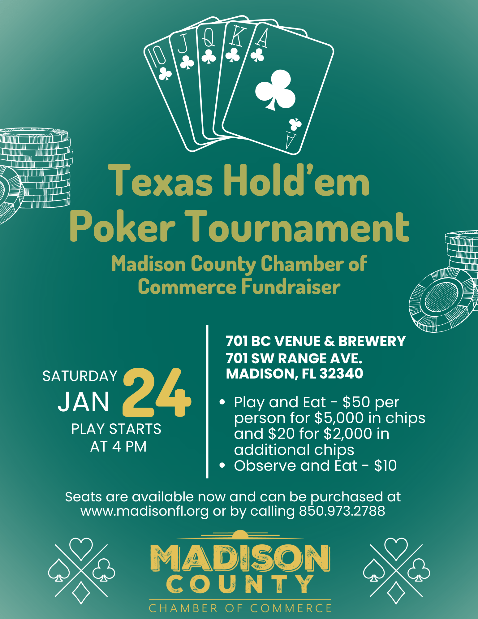 Join us for our annual Texas Hold Em' Poker Tournament. Limited seats available so reserve your spot today. Fantastic prizes for the top 5 winners.